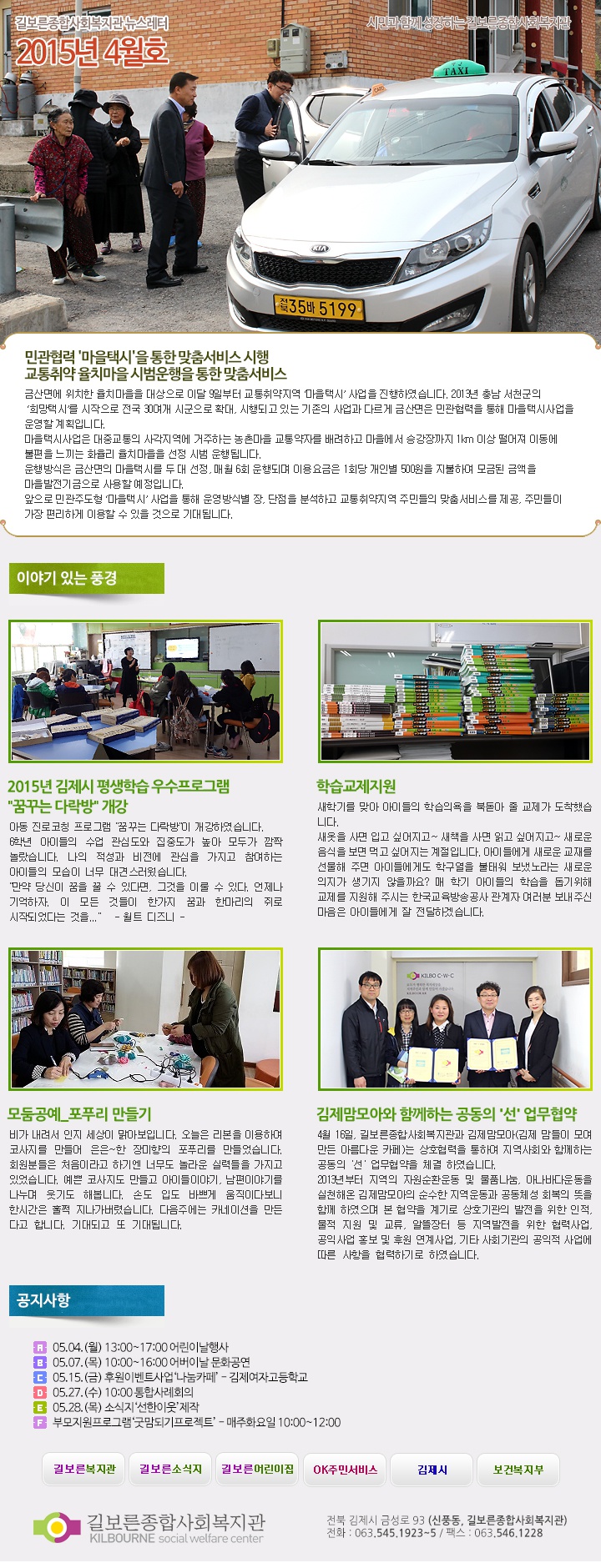 2015년 04월호 페이지 정보 작성자 관리자 댓글 0건 조회 3,969회 작성일 16-04-28 10:54 본문 . 관련링크 http://www.kilbo.or.kr/mail/mail_1504.html 3794회 연결 목록 이전글2015년 05월호 16.04.28 다음글2015년 03월호 15.03.31