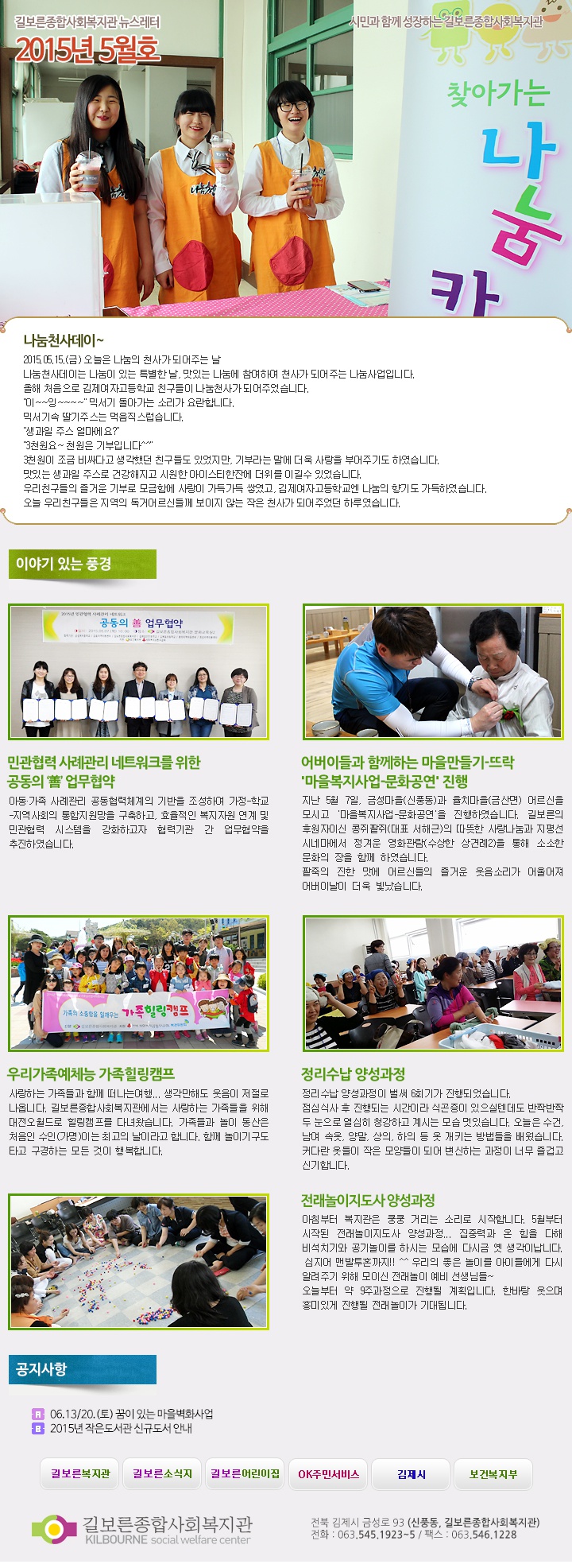 2015년 05월호 페이지 정보 작성자 관리자 댓글 0건 조회 3,981회 작성일 16-04-28 10:54 본문 . 관련링크 http://www.kilbo.or.kr/mail/mail_1505.html 3456회 연결 목록 이전글2015년 06월호 15.06.30 다음글2015년 04월호 16.04.28