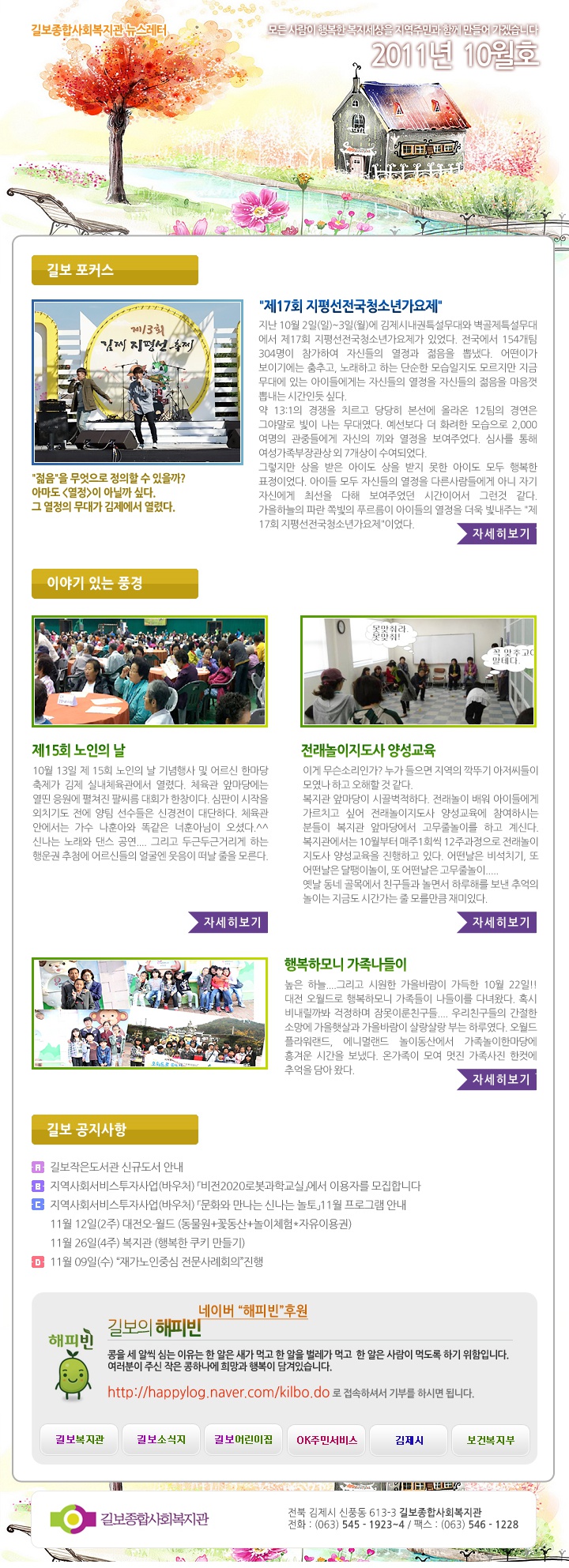 2011년 10월호 페이지 정보 작성자 하나정보시스템 댓글 0건 조회 3,680회 작성일 12-06-28 14:10 본문 2011년 10월호 관련링크 http://www.kilbo.or.kr/mail/mail_1110.html 3472회 연결 목록 이전글2011년 11월호 12.06.28 다음글2011년 09월호 12.06.28