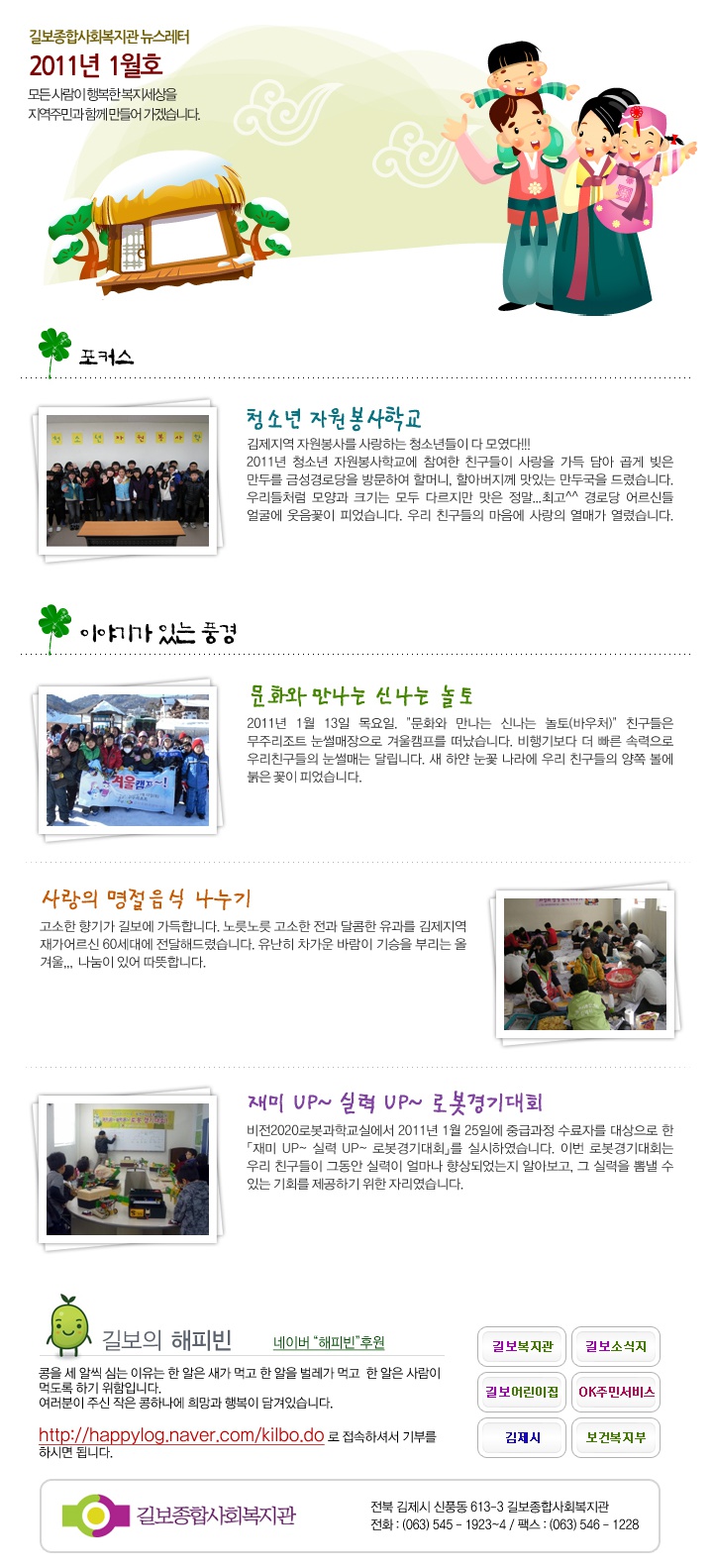 2011년 01월호 페이지 정보 작성자 하나정보시스템 댓글 0건 조회 3,588회 작성일 12-06-28 14:08 본문 2011년 01월호 관련링크 http://www.kilbo.or.kr/mail/mail_1101.html 3011회 연결 목록 이전글2011년 02월호 12.06.28 다음글2010년 12월호 12.06.28