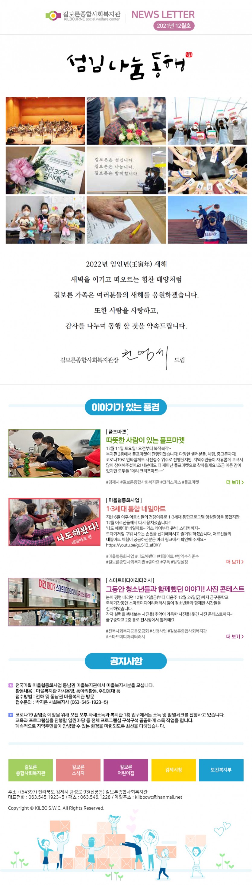 2021년 12월호 페이지 정보 작성자 관리자 댓글 0건 조회 3,462회 작성일 22-02-08 18:35 본문 . 관련링크 http://www.kilbo.or.kr/mail/mail_2112.html 3406회 연결 목록 이전글2022년 01월호 22.02.15 다음글2021년 11월호 21.12.23