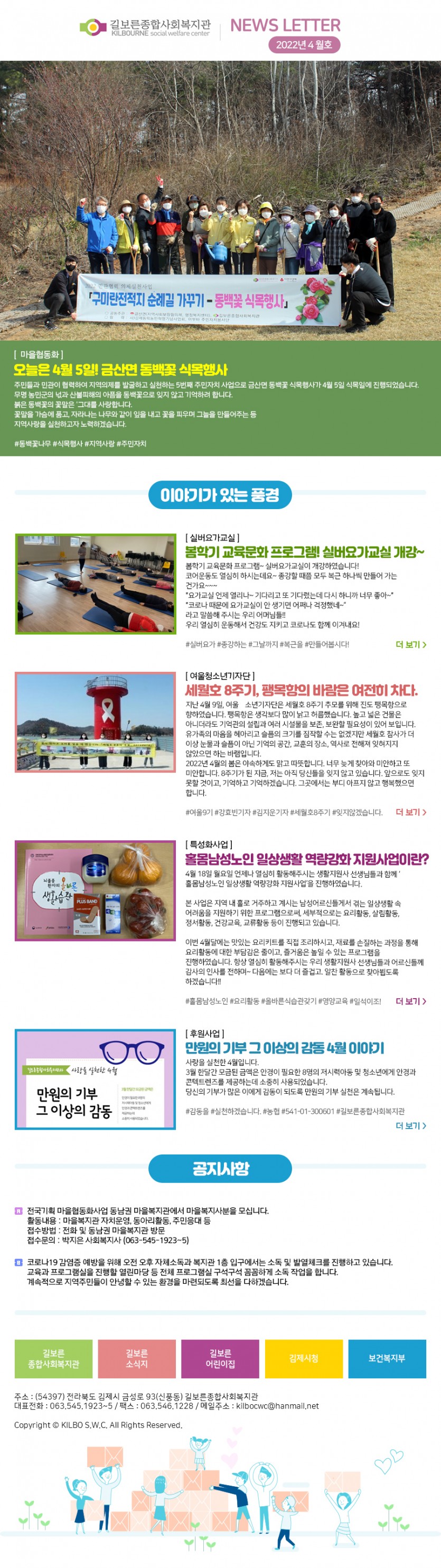 2022년 04월호 페이지 정보 작성자 관리자 댓글 0건 조회 3,545회 작성일 22-05-04 11:11 본문 . 관련링크 http://www.kilbo.or.kr/mail/mail_2204.html 3370회 연결 목록 이전글2022년 05월호 22.07.06 다음글2022년 03월호 22.04.05
