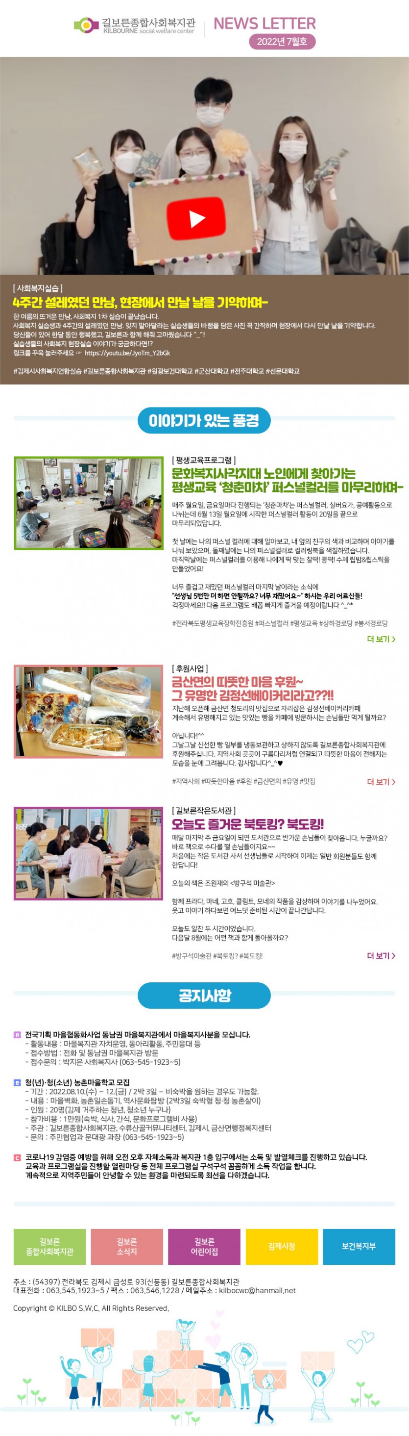 2022년 07월호 페이지 정보 작성자 관리자 댓글 0건 조회 3,366회 작성일 22-08-03 17:16 본문 . 관련링크 http://www.kilbo.or.kr/mail/mail_2207.html 2937회 연결 목록 이전글2022년 08월호 22.09.30 다음글2022년 06월호 22.07.06