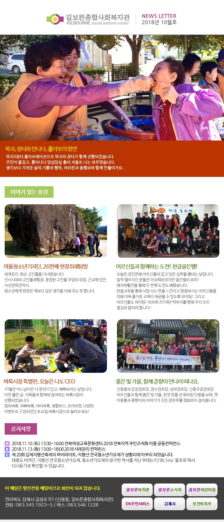 2018년 10월호 페이지 정보 작성자 관리자 댓글 0건 조회 3,500회 작성일 18-11-12 11:01 본문 . 관련링크 http://www.kilbo.or.kr/mail/mail_1810.html 3638회 연결 목록 이전글2019년 01월호 19.05.22 다음글2018년 09월호 18.11.12