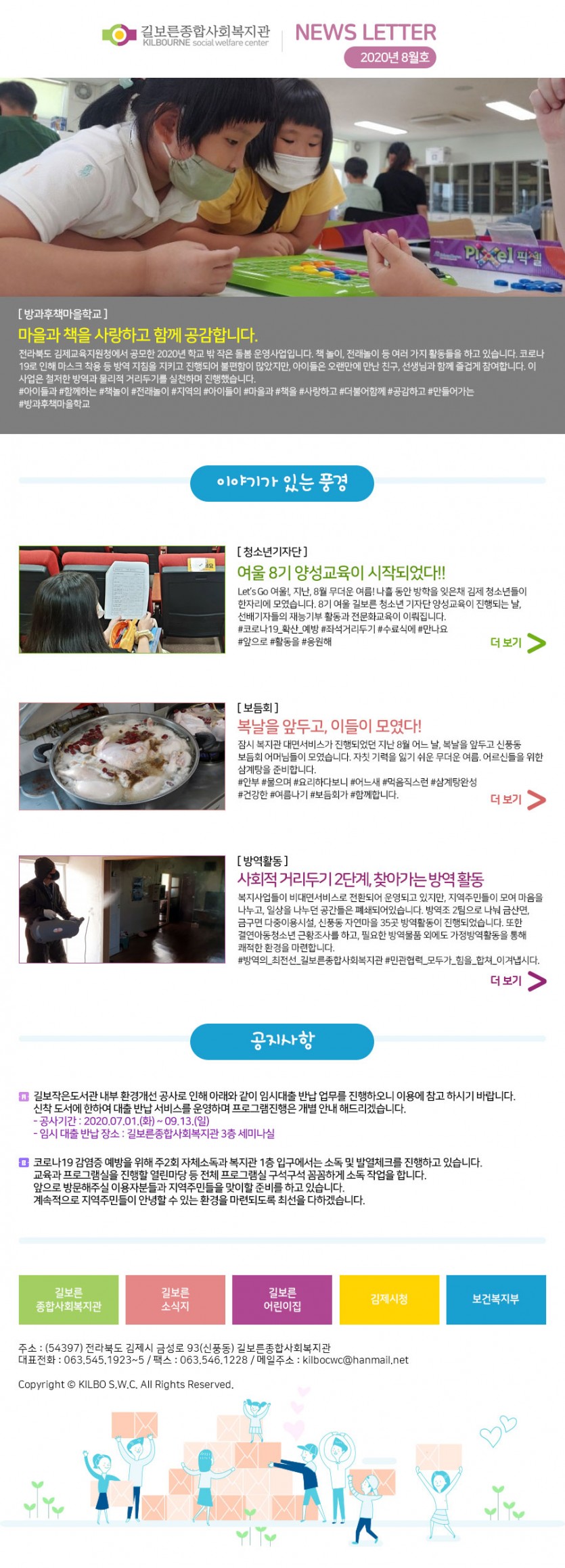 2020년 08월호 페이지 정보 작성자 관리자 댓글 0건 조회 3,453회 작성일 20-09-10 17:27 본문 . 관련링크 http://www.kilbo.or.kr/mail/mail_2008.html 2981회 연결 목록 이전글2020년 10월호 20.12.02 다음글2020년 07월호 20.09.10