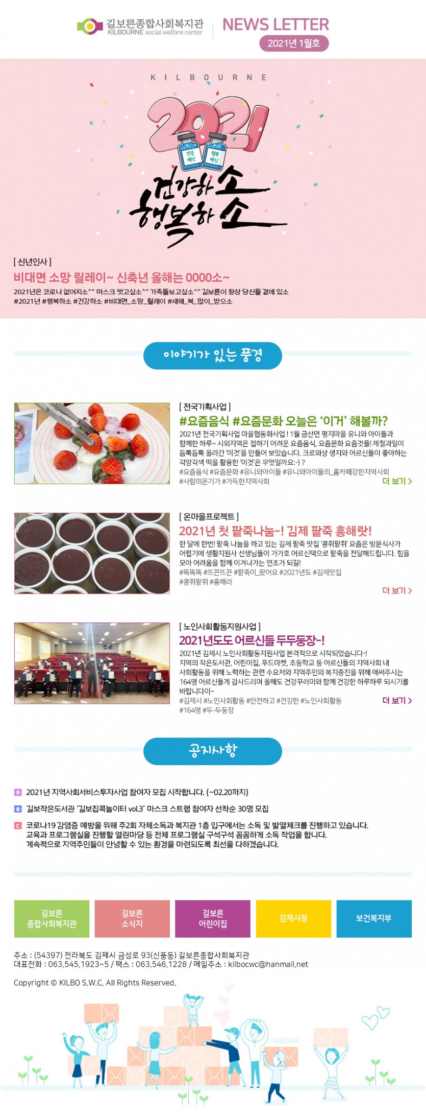 2021년 01월호 페이지 정보 작성자 관리자 댓글 0건 조회 3,563회 작성일 21-04-05 11:27 본문 . 관련링크 http://www.kilbo.or.kr/mail/mail_2101.html 3011회 연결 목록 이전글2021년 02월호 21.04.05 다음글2020년 12월호 21.04.05