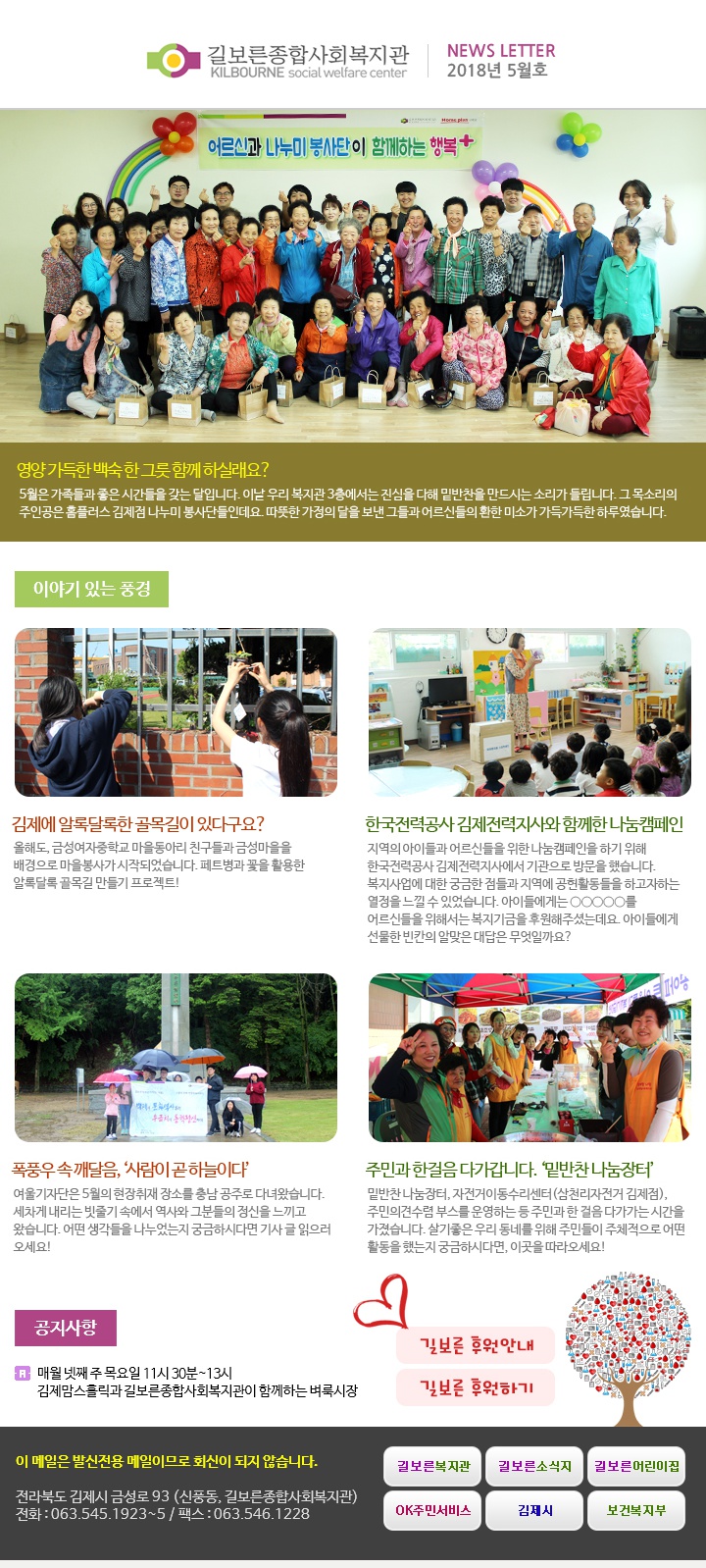 2018년 05월호 페이지 정보 작성자 관리자 댓글 0건 조회 3,495회 작성일 18-06-04 15:23 본문 . 관련링크 http://www.kilbo.or.kr/mail/mail_1805.html 3046회 연결 목록 이전글2018년 08월호 18.11.12 다음글2018년 04월호 18.05.31