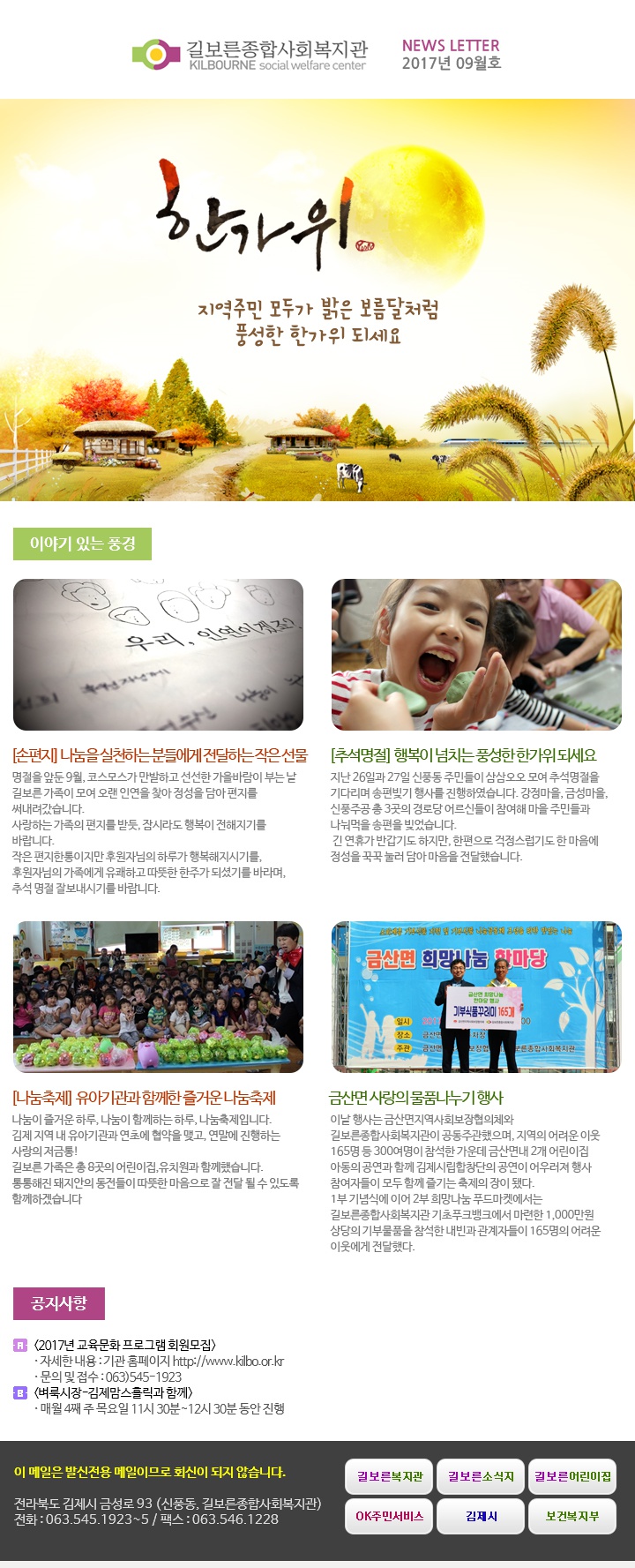 2017년 09월호 페이지 정보 작성자 관리자 댓글 0건 조회 4,113회 작성일 17-10-12 11:32 본문 . 관련링크 http://www.kilbo.or.kr/mail/mail_1709.html 3555회 연결 목록 이전글2017년 10월호 18.05.31 다음글2017년 08월호 17.10.12
