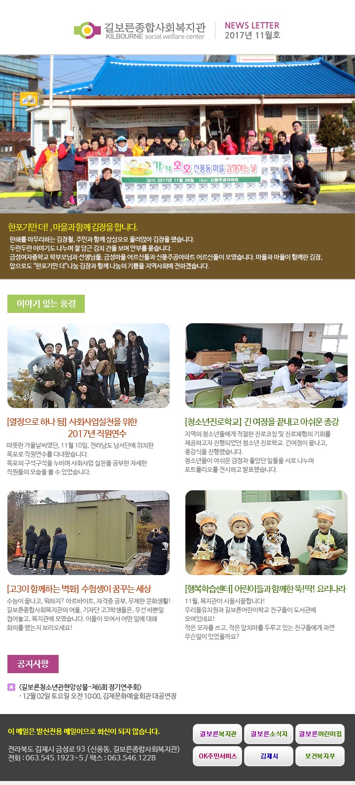 2017년 11월호 페이지 정보 작성자 관리자 댓글 0건 조회 4,055회 작성일 18-05-31 13:44 본문 . 관련링크 http://www.kilbo.or.kr/mail/mail_1711.html 3522회 연결 목록 이전글2017년 12월호 18.05.31 다음글2017년 10월호 18.05.31