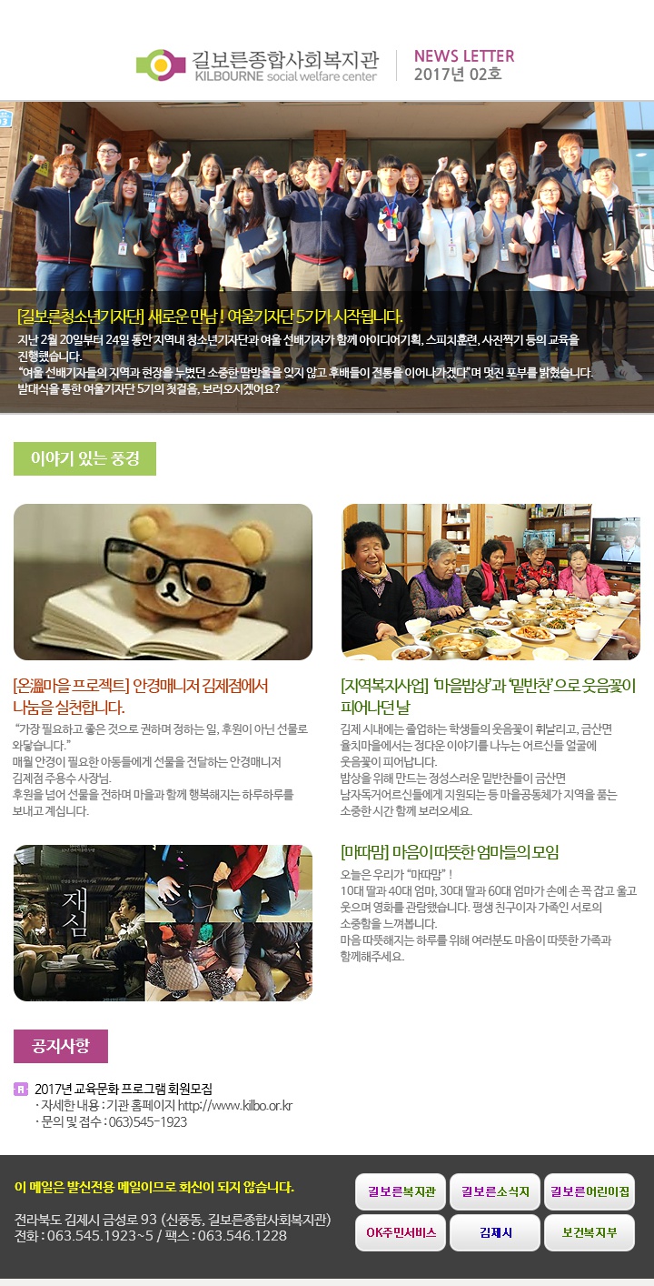 2017년 02월호 페이지 정보 작성자 관리자 댓글 0건 조회 4,072회 작성일 17-04-12 17:29 본문 . 관련링크 http://www.kilbo.or.kr/mail/mail_1702.html 3547회 연결 목록 이전글2017년 03월호 17.04.12 다음글2017년 01월호 17.04.12