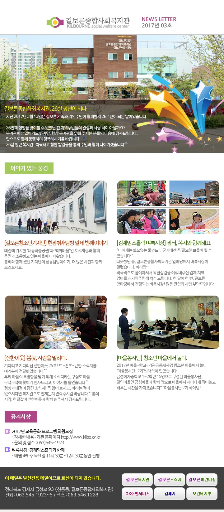2017년 03월호 페이지 정보 작성자 관리자 댓글 0건 조회 4,109회 작성일 17-04-12 17:30 본문 . 관련링크 http://www.kilbo.or.kr/mail/mail_1703.html 3577회 연결 목록 이전글2017년 04월호 17.10.12 다음글2017년 02월호 17.04.12